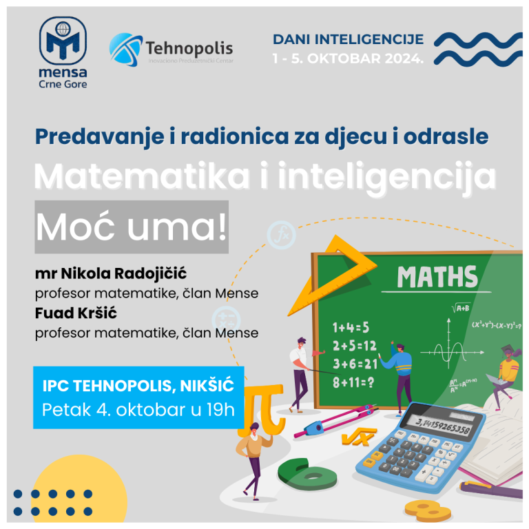 Dani inteligencije 2024, Mensa-novosti Predavanje i radionica “Matematika i inteligencija: Moć uma!” u Tehnopolisu 26/09/2024 by mensaadmin
