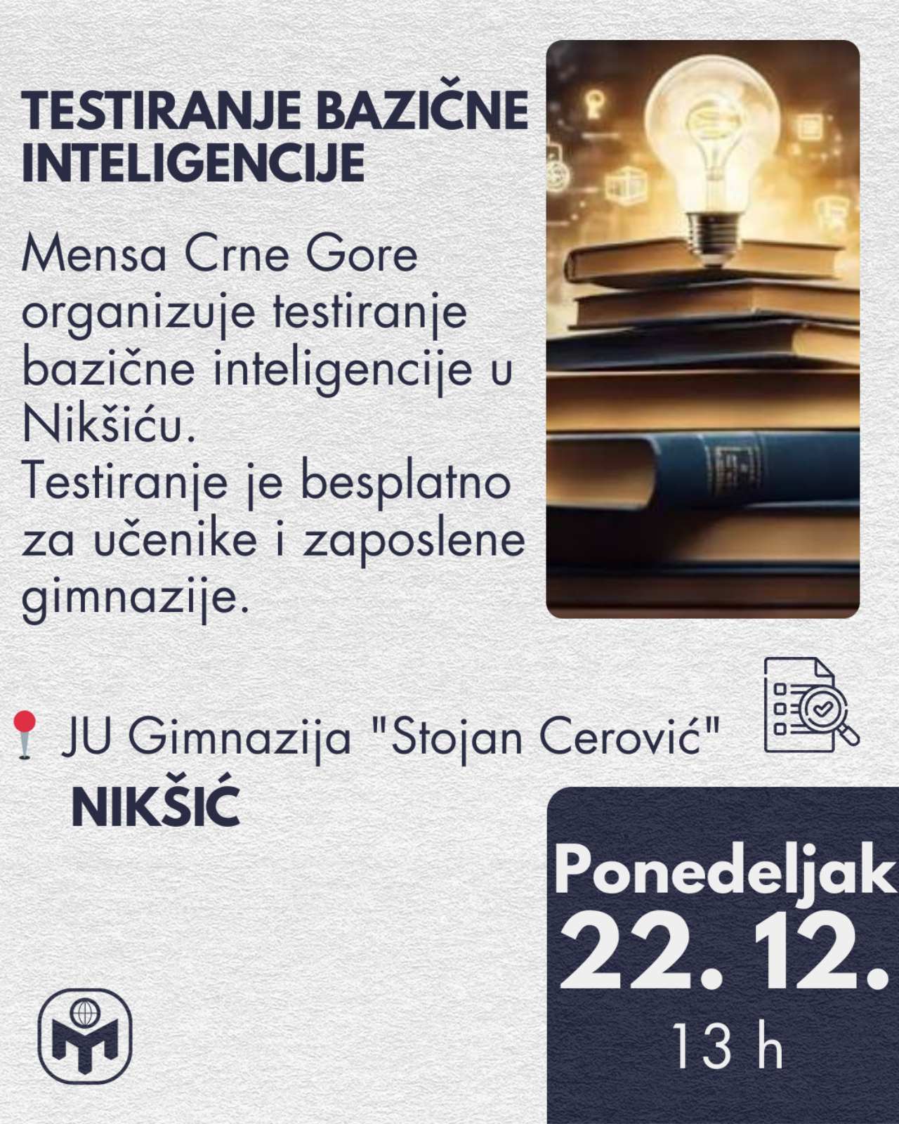 ℹ️Ukoliko imate bilo kakvih pitanja ili nedoumica možete se obratiti na email: testiranje@mensa.me.